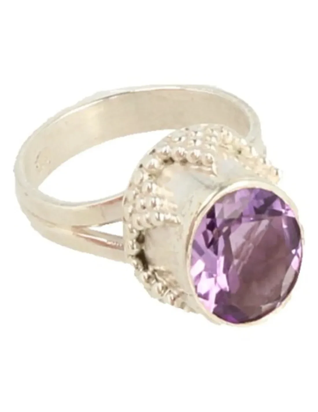 Een prachtige zilveren ring met een Amethist edelsteen. Amethist wordt geassocieerd met helderheid van geest en zelfinzicht